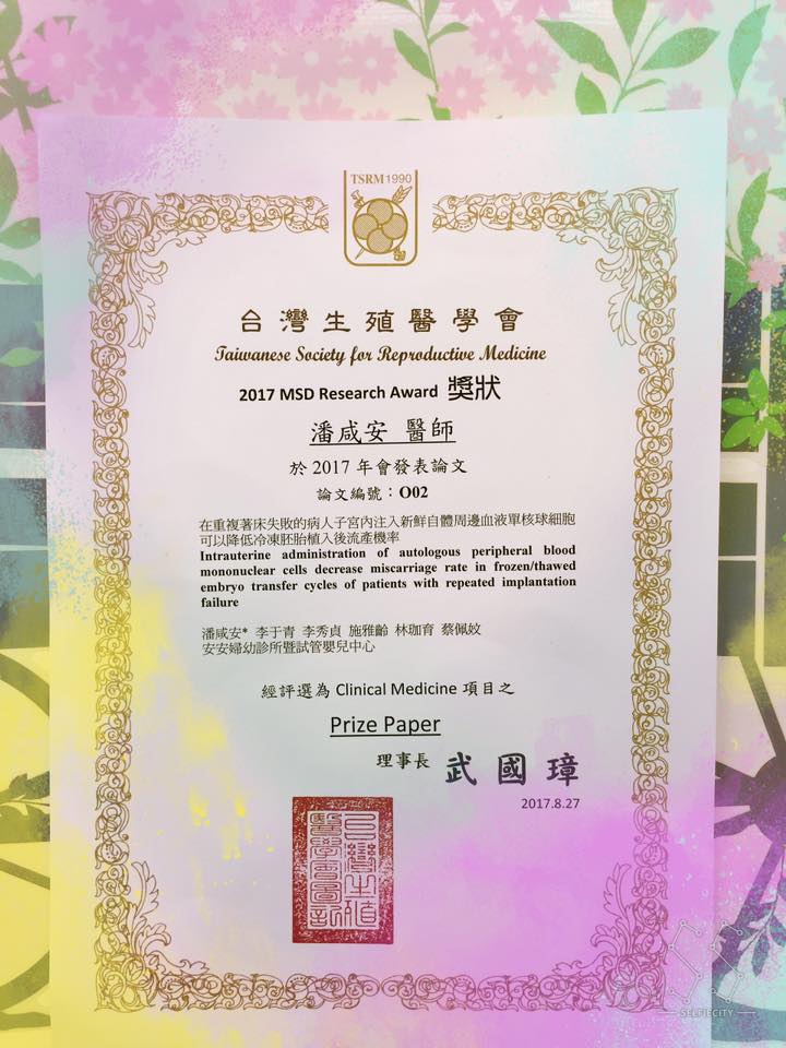 在台灣生殖醫學會場上聽達特潘Prize Paper Ppresentation 內心無比澎湃激動 因為太感動惹咩~ 相逢即是有緣 緣分為我們搭起圓夢的橋樑 正因如此 安安試管團隊一直秉持著「給大家最好的」 希望在我們的堅持努力下 皆有好孕發生呦(加油